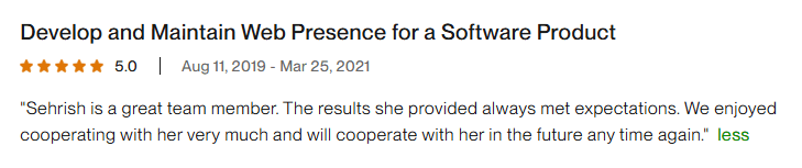 I have a 100% Job Success score on Upwork, demonstrating consistent results and trusted client satisfaction.